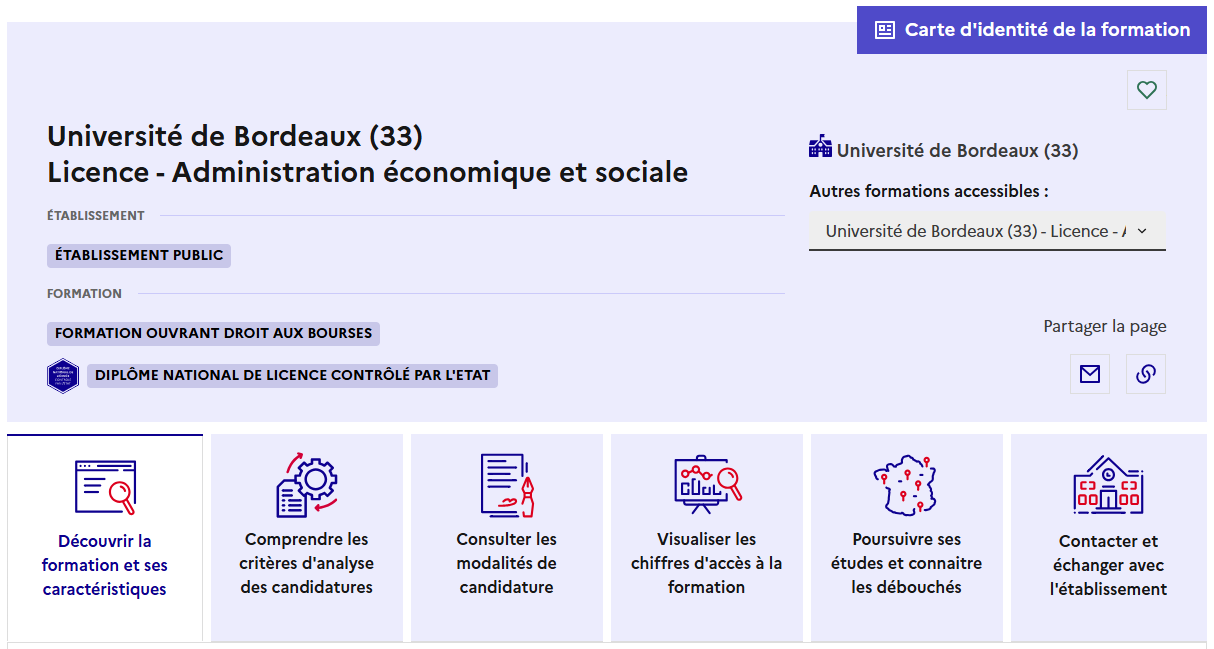 Chaque formation disponible sur Parcoursup dispose d'une fiche formation.